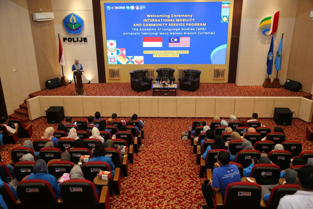 Politeknik Negeri Jember (Polije) secara resmi membuka program pertukaran pelajar dengan menyambut kedatangan mahasiswa dan dosen Universiti Teknologi MARA (UiTM) Melaka Branch dalam acara Opening Ceremony UiTM Student and Teacher Mobility to Polije yang digelar di Auditorium Vokasi pada Senin (20/10/2025).